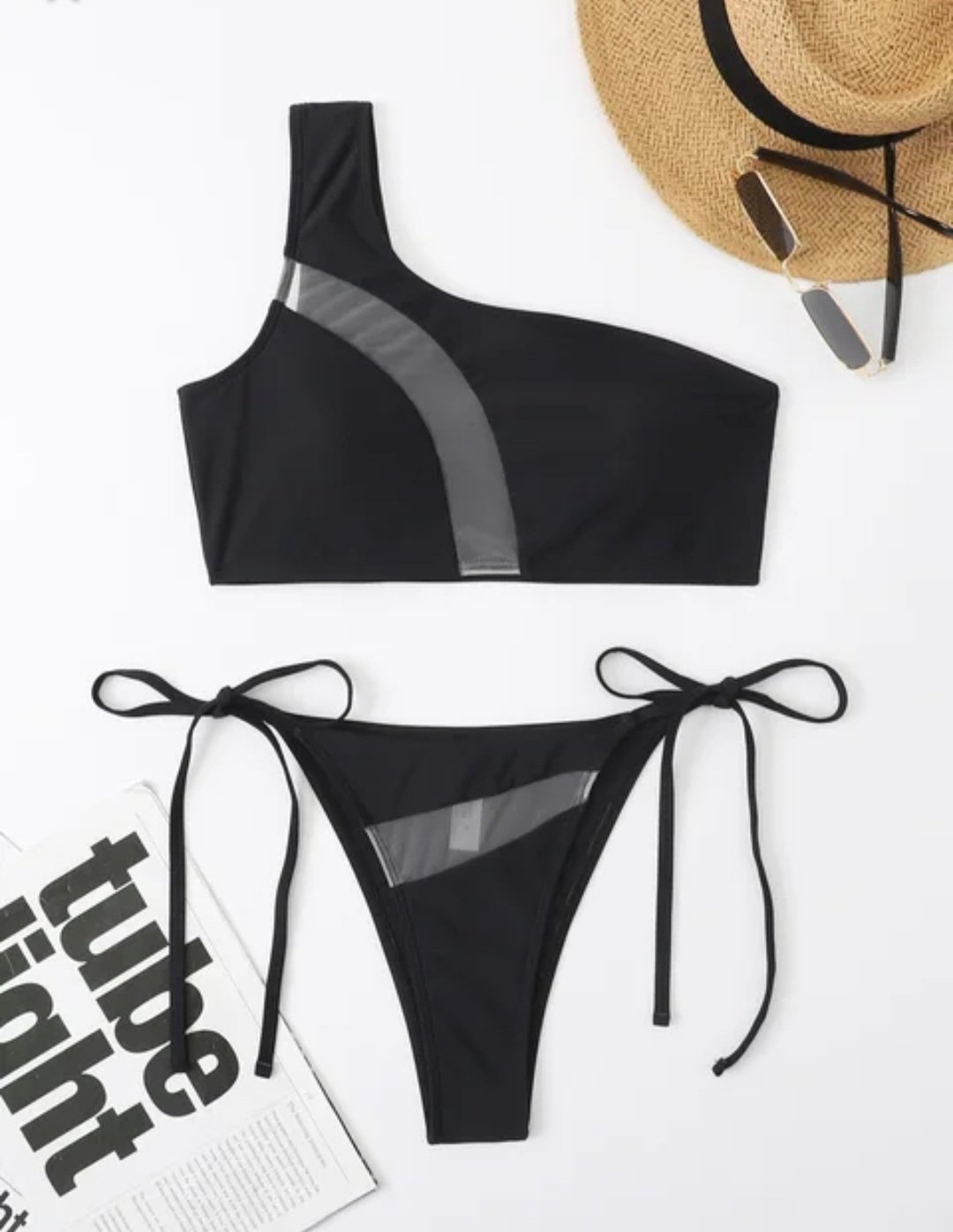 The headlines will love this bikini. Featuring a double layer swim material and a cut out mesh padded bikini top and cut out mesh bikini bottom.