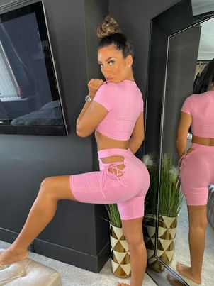 Fierce and sassy this two piece is for you. Featuring a stretch ribbed fabric with strings on the sides. Pair it with trainers for perfect look.