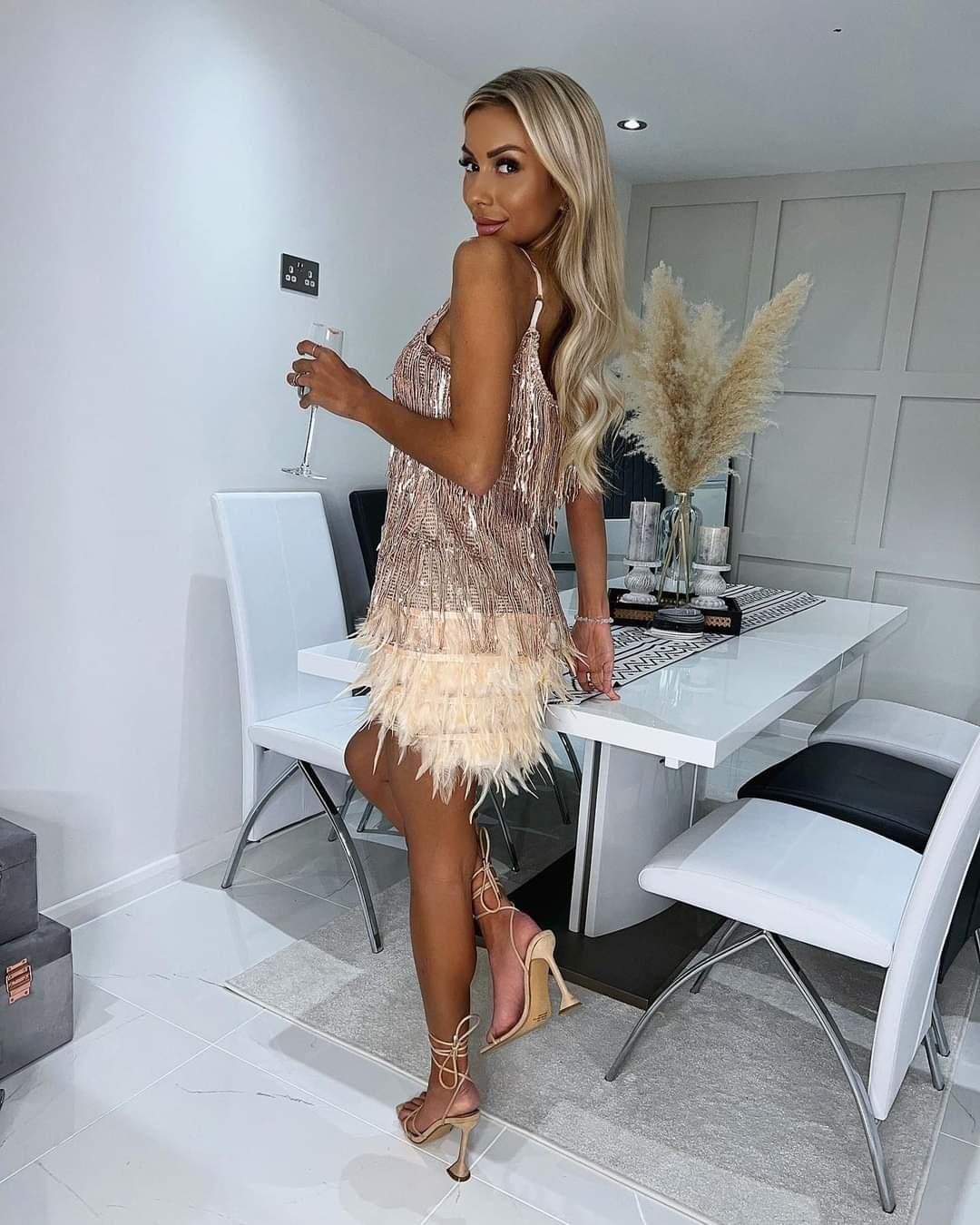 Sparkle your way into party season with this stunning tassel sequin feather mini dress! Pair it with high heels for perfect night out look.