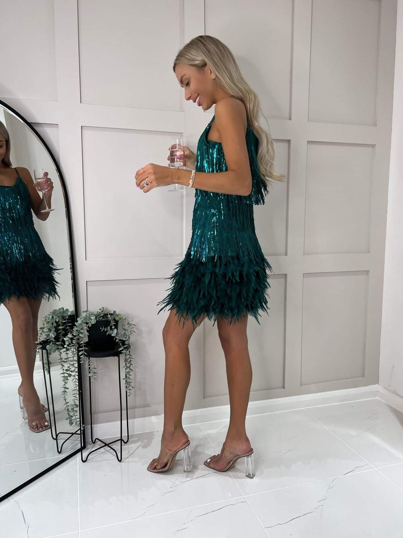 Daphne Sequin Feather Dress