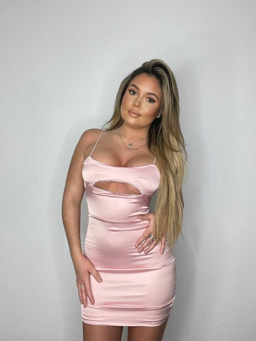 Get all eyes on you in this stunning mini dress. Features stretchy satin double layer fabric with cut out detailing with diamonds. Pair it with high heels for perfect night out look.