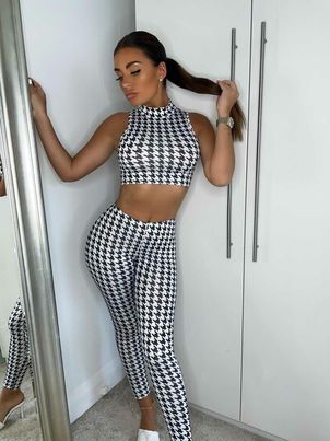 Get a simple look with this two piece set. Featuring crop top and bottoms, pair it with trainers or heels for perfect look.