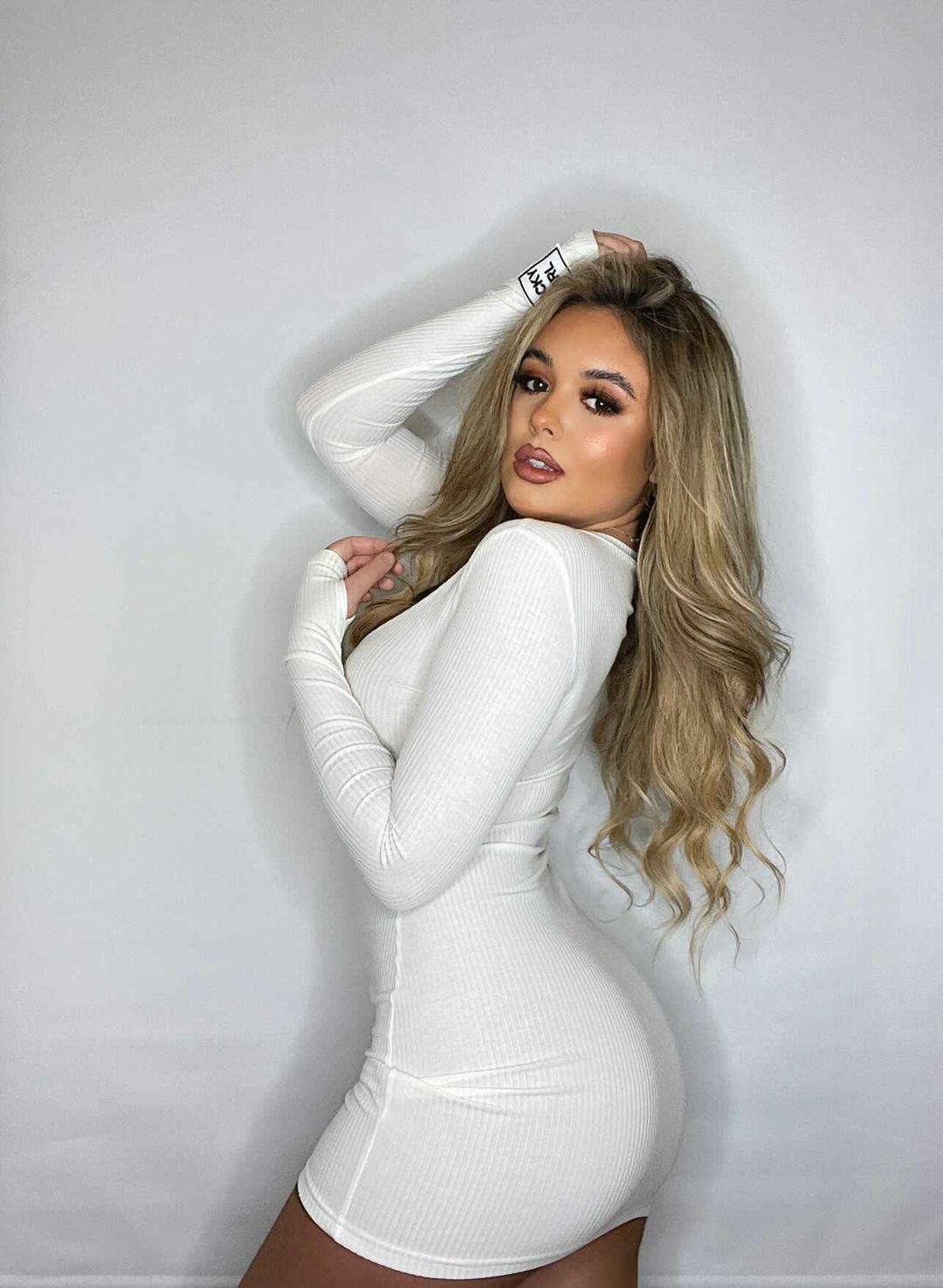 Just what you need for the weekend! The Trinity ribbed mini dress features a V-neck.